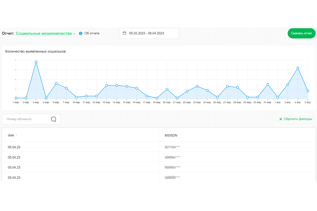 На основе собранных данных платформа составляет отчёты о разных видах мошенничества c номерами абонентов МегаФона. В рамках классификации threat intelligence предоставляемые данные являются тактическими.